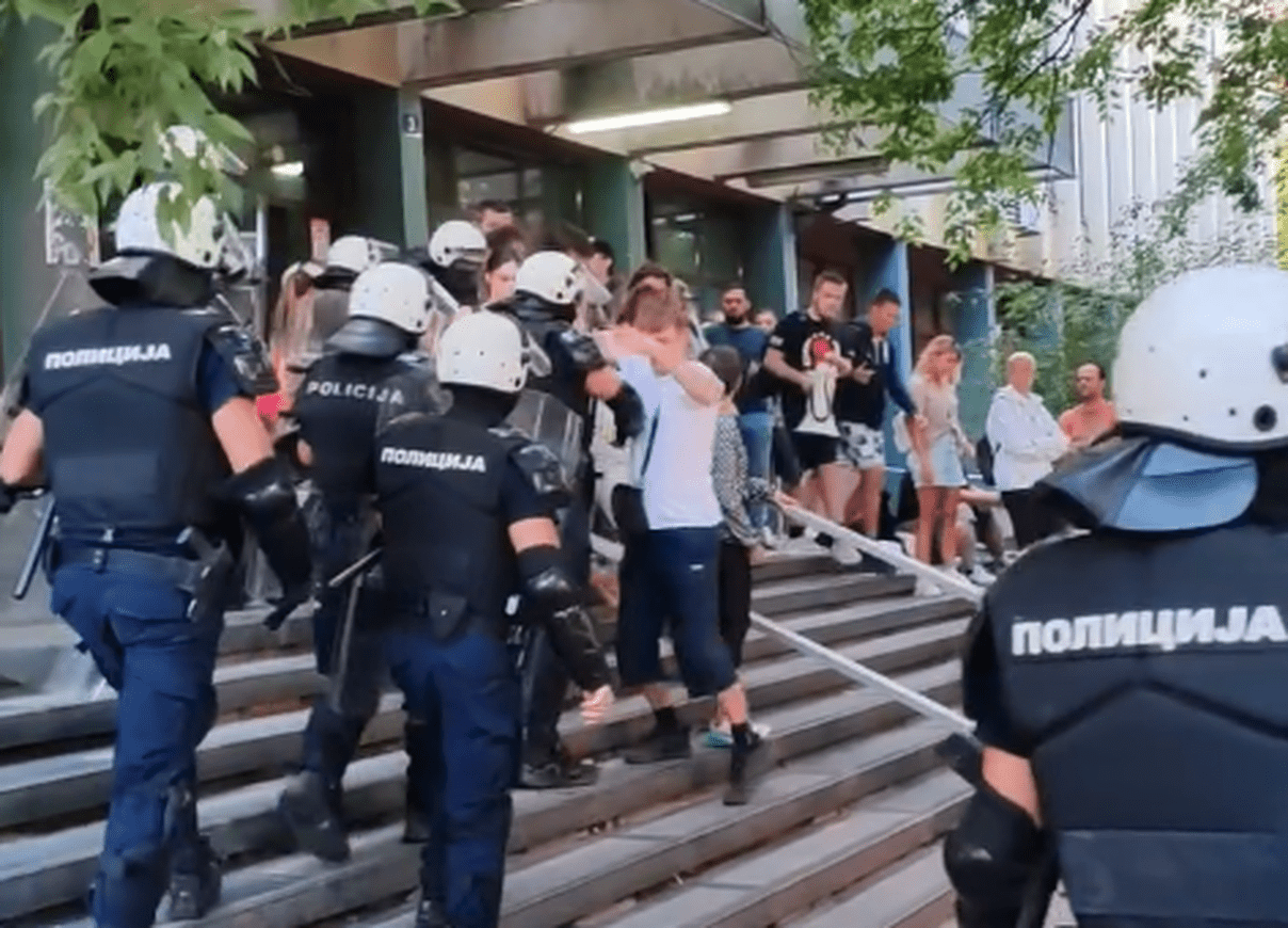 Kako je za N1 rekao advokat privedenog, Milan Gluševac, student se tereti za krivično delo napad na službeno lice, za koje je predviđena kazna zatvora do 5 godina.