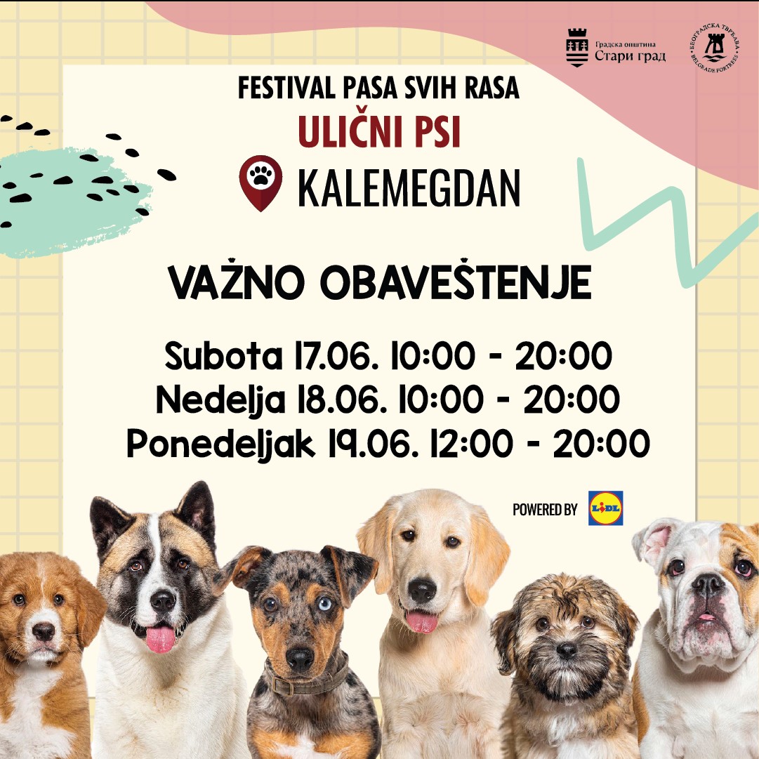“ULIČNI PSI, FESTIVAL PASA SVIH RASA” Kalemegdan 17.do 19.juna 2023.