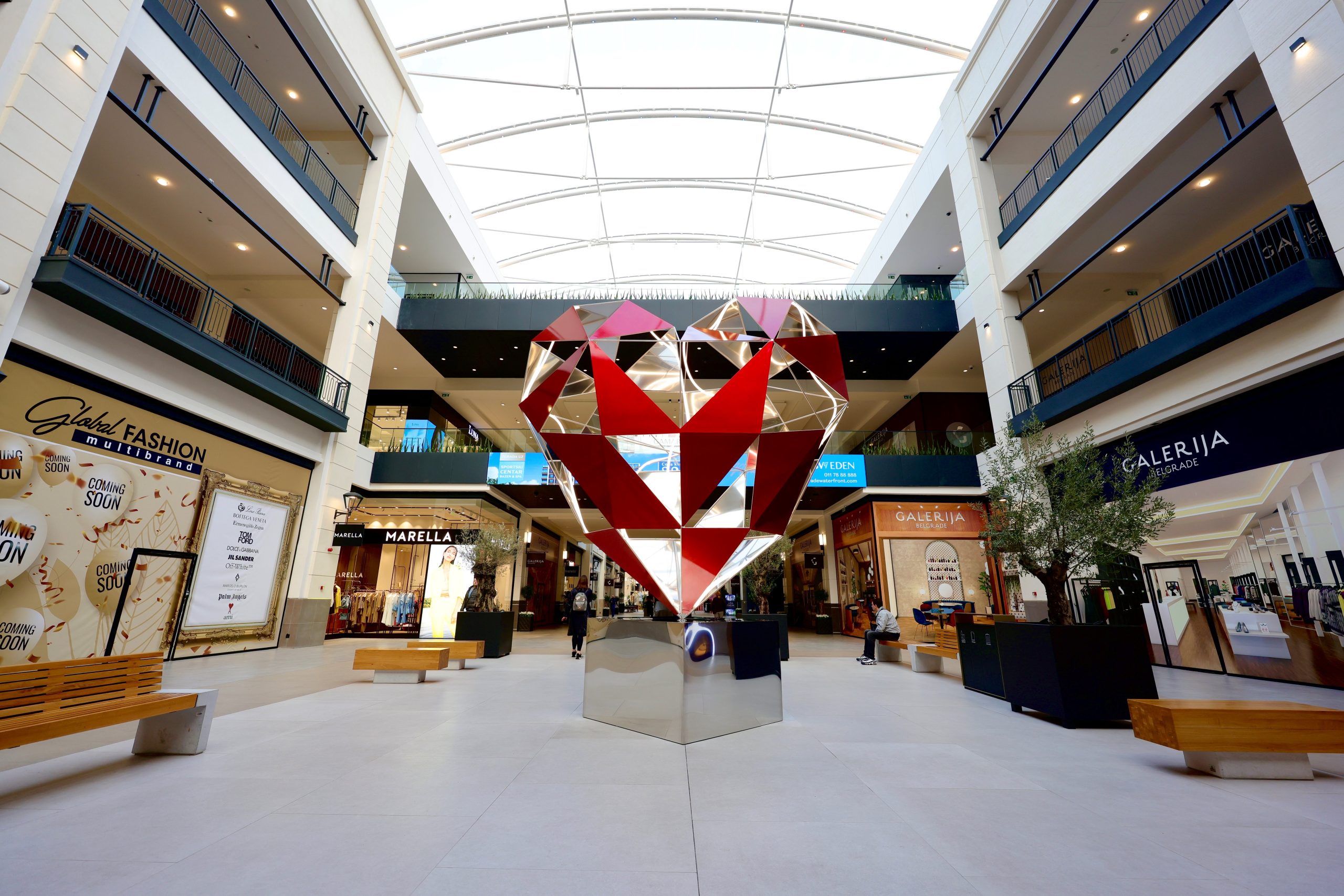 Prostor Galerije dodatno je oplemenjen visećim umetničkim instalacijama Talasi, Lipa i Leptiri, koje se graciozno spuštaju sa prozračnog svoda stvarajući magičan i veličanstven prizor za sve posetioce. Pored ovih skulptura koje krase zatvoren prostor, očekuje se i postavka prve instalacije na otvorenom pod nazivom Ljudi, koja će simbolično biti postavljena ispod mosta Gazele kao mesta spajanja i susreta ljudi, a delo je stranog projektanta.