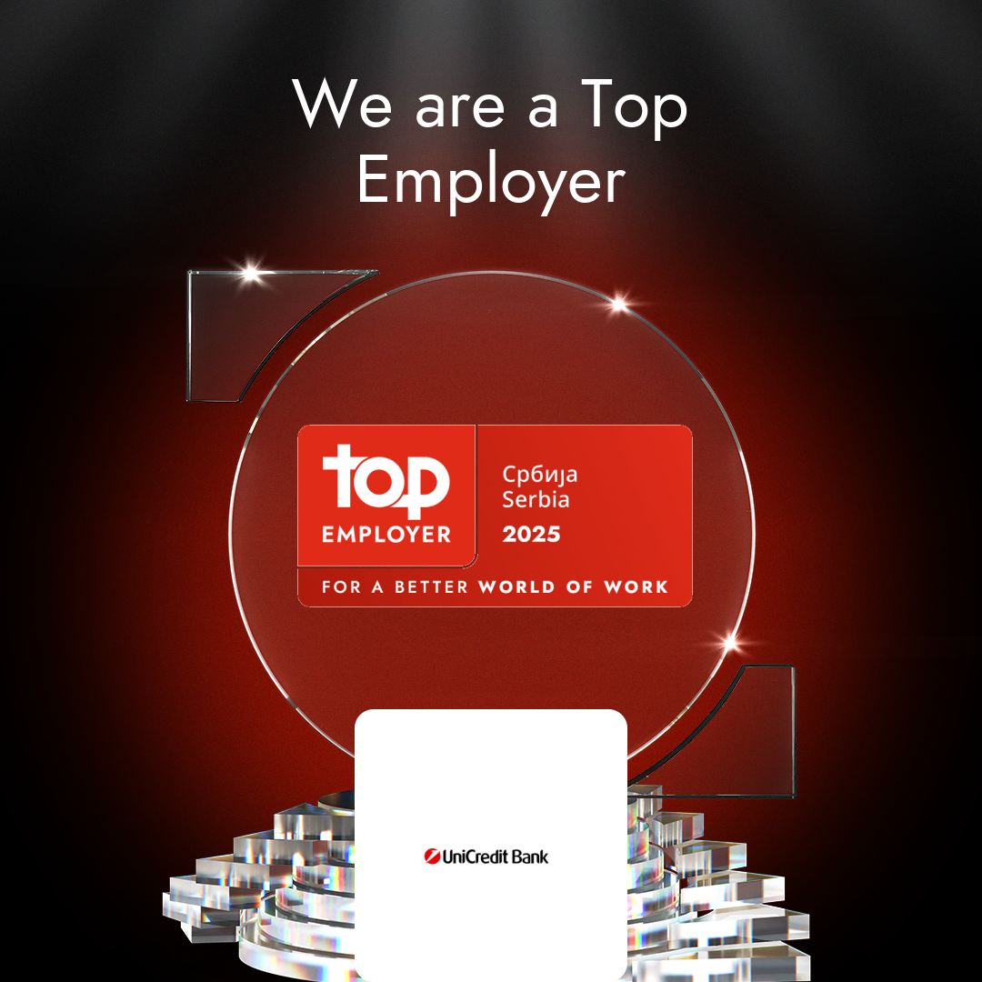 Treću godinu zaredom, a ukupno po četvrti put, UniCredit Bank je zvanično sertifikovana kao Top Employer (najbolji poslodavac) u Srbiji, istakavši se u primeni najboljih praksi i politika u oblasti ljudskih resursa.