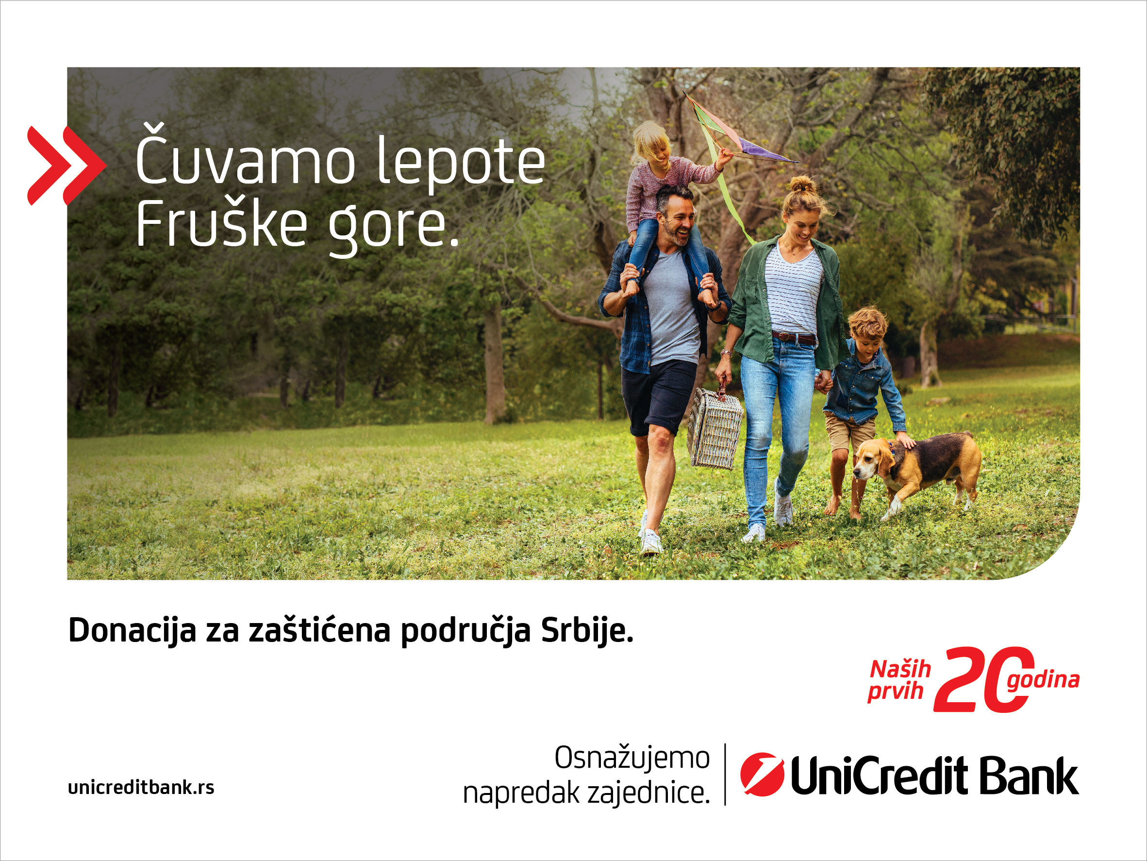Povodom proslave jubileja, 20 godina uspešnog poslovanja u Srbiji, UniCredit Banka je tokom novembra i decembra prethodne godine u okviru kampanje „20 godina se zajedno trudimo da pokrećemo dobre stvari“ od svakog realizovanog keš kredita i kredita za obrtna sredstva u vrednosti većoj od 200.000 dinara, izdvajala 2.000 dinara. Tokom dva meseca trajanja kampanje ukupno je prikupljeno više od 13 miliona dinara, a koji će tokom ove godine biti uloženi u projekte unapređenja zaštićenih područja i očuvanja bio-diverziteta na teritoriji Republike Srbije.