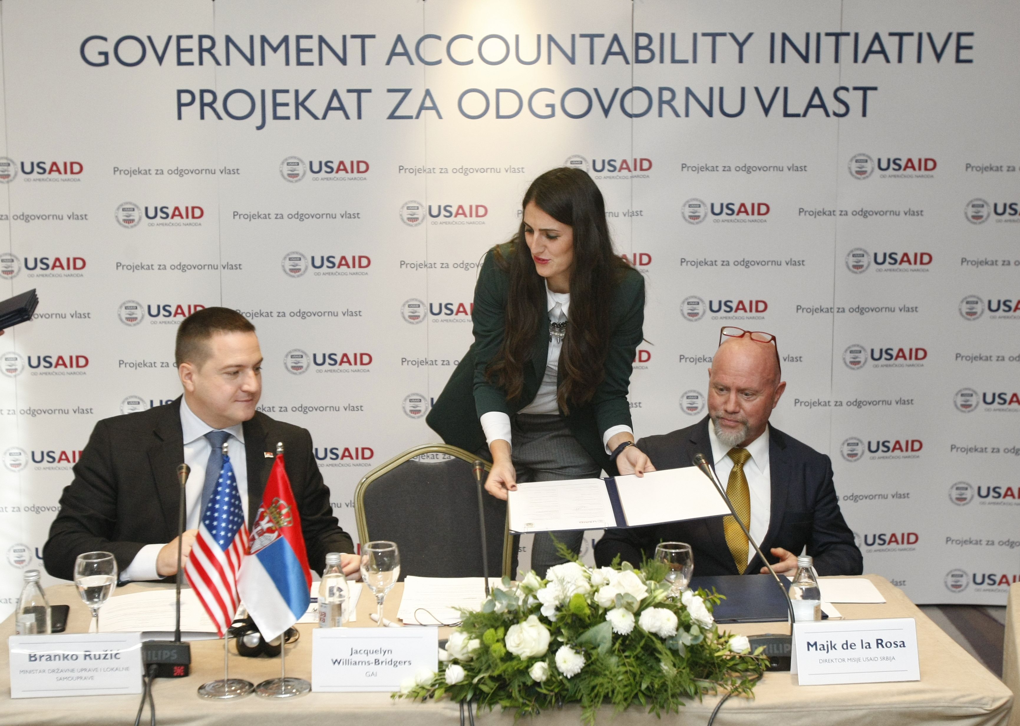 Američka agencija za međunarodni razvoj (USAID) potpisala je 15. novembra 2019. godine Memorandume o razumevanju sa gradonačelnicima šest gradova i opština (Niš, Kragujevac, Sremska Mitrovica, Novi Pazar, Žabalj i Stari grad) u cilju jačanja napora u borbi protiv korupcije i razvoja transparentne, inkluzivne i odgovorne lokalne vlasti. Uz šest novih partnera, USAID sada sarađuje sa 13 lokalnih samouprava na unapređenju transparentnost i većem učešću javnosti u donošenju odluka na lokalnom nivou.