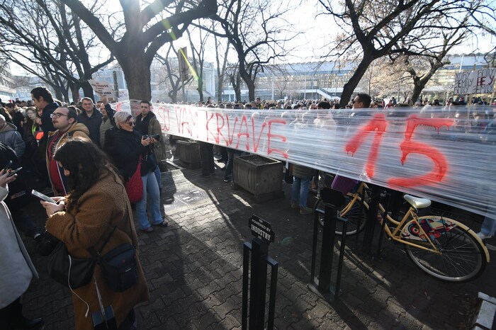 „Tražimo pravično postupanje u svim krivičnim postupcima vezanim za slučaj pada nadstrešnice u Novom Sadu. Tražimo primenu zakona i Ustava. Imamo pitanje za sve institucije: do kada ćete dozvoljavati da studenti rade vaš posao“, poručila je jedna od okupljenih studentkinja.