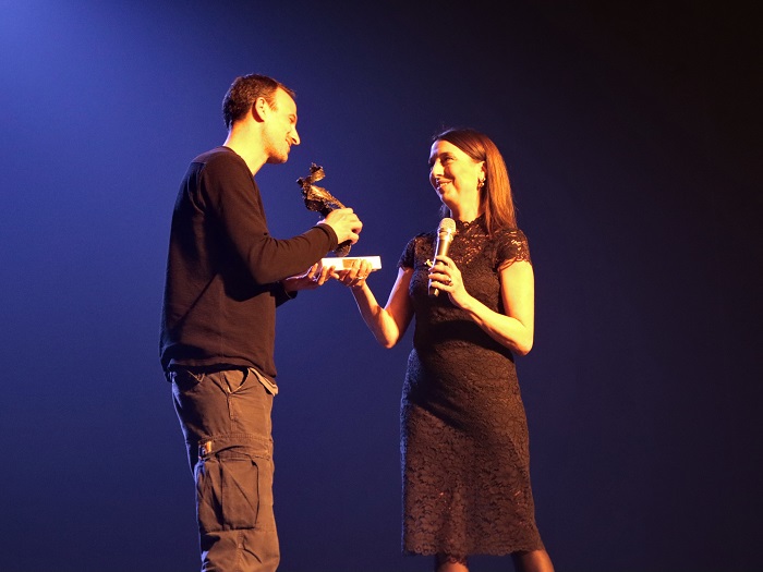 Stilizovanu baletsku patiku, rad Andreje Prokopijević, uručila mu je Aja Jung, direktorka Festivala.