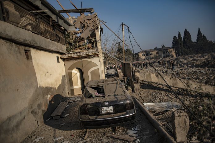 Paljba je primorala stanovnike Stepanakerta, glavnog grada Nagorno-Karabaha, da beže u skloništa, dok vatrogasci i spasioci gase požare.