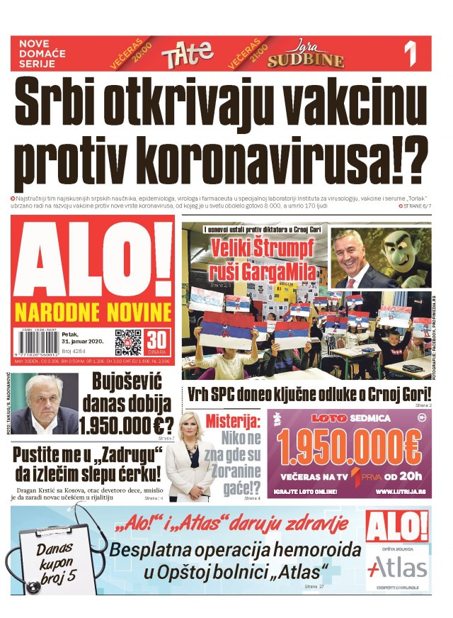 NASLOVNE STRANE DNEVNIH NOVINA: