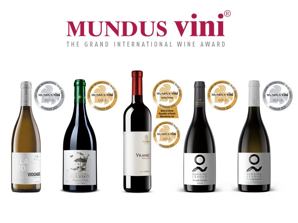 Najviša ocena – zlatna medalja i specijalna nagrada „Najbolje crveno vino iz Makedonije“ pripalo je vinu „Vranec Luda Mara 2020“. Zlatnu medalju osvojilo je i novo vino koje će se tek naći na tržištu „Babuna red 2021“ u kome dominira sorta plavac mali, kao i vina „Terrasse a l’Ombre 2020“ i „Domaine Lepovo Grand Cuvee 2019”. Vina ,,Domaine Lepovo Chardonnay 2021“ i „Viognier Bela Voda 2022″ nagrađena su srebrnom medaljom.