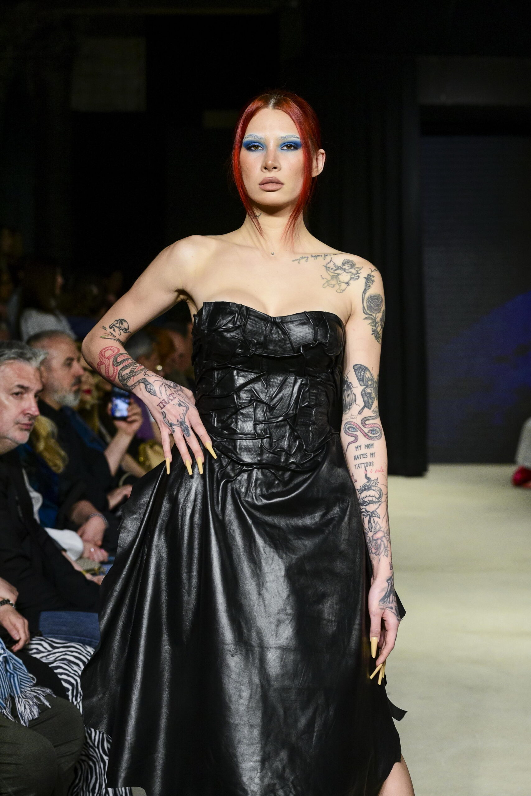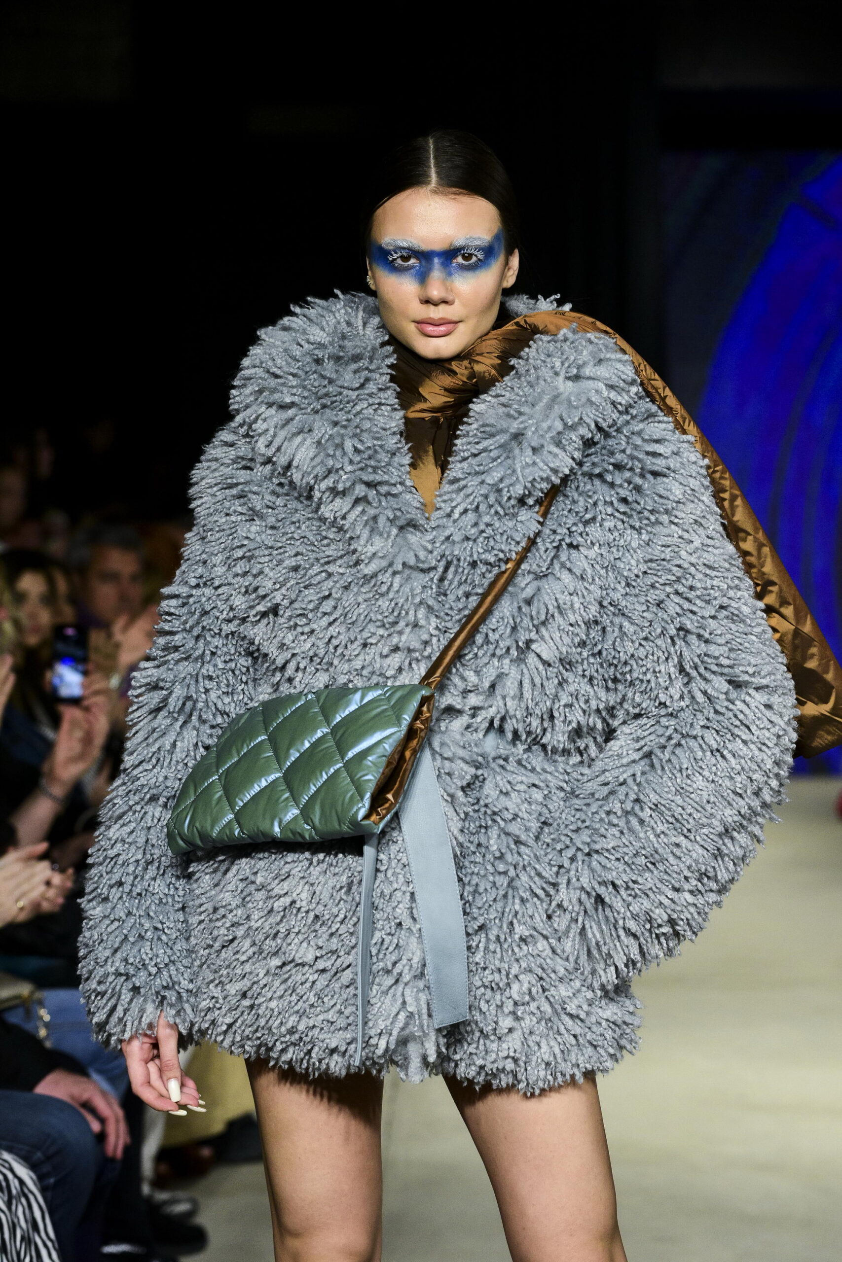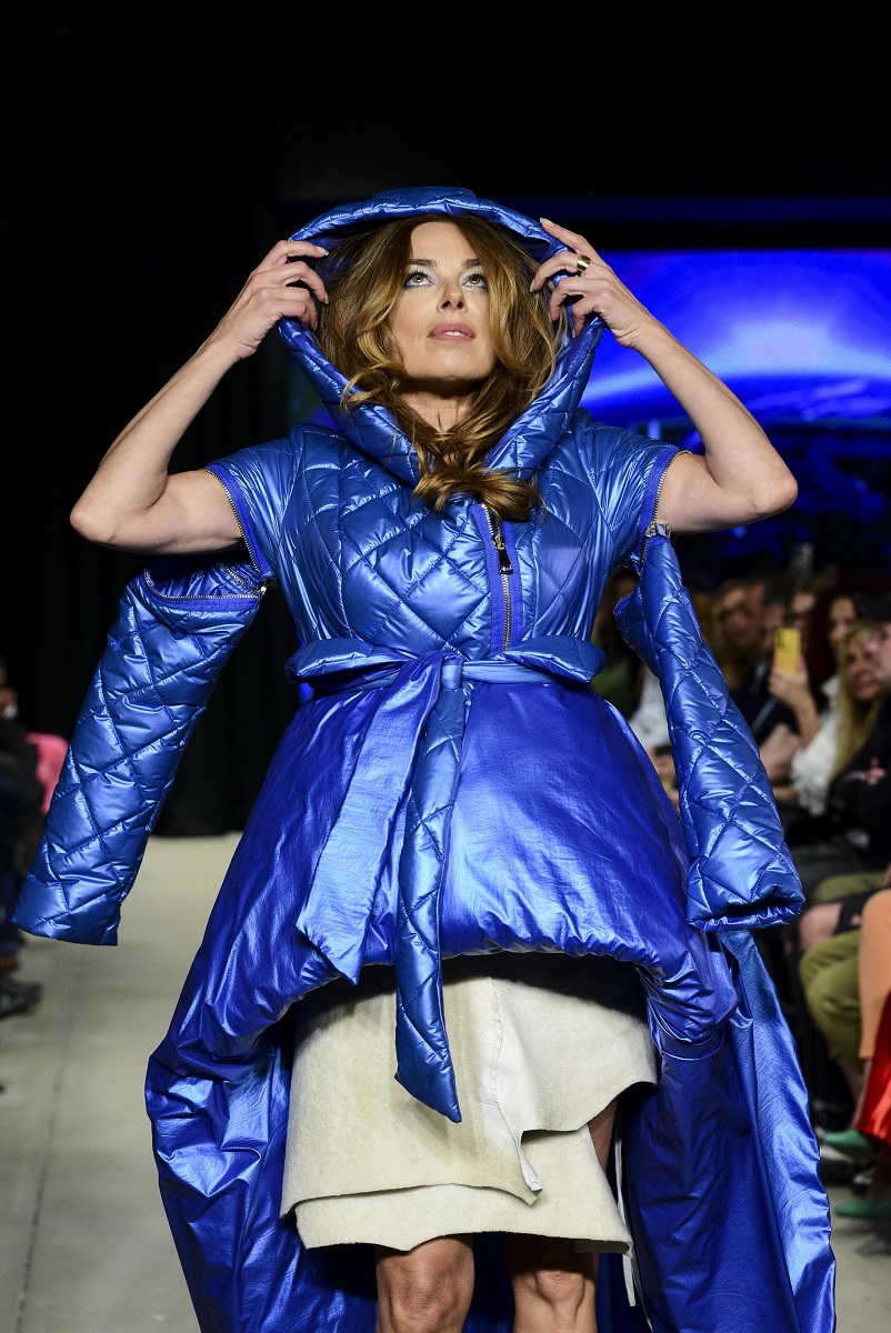 Reviju je otvorio nastup balerine Drine Pešić, zatim su pistom prošetale glumice Jelena Gavrilović i Katarina Radivojević, kao i poznata influenserka Uki Q. Na pisti smo mogli videti pre-fall 2024 kolekciju koju čini neobičan spoj prirodnih i veštačkih materijala – jagnjeće krzno u svom sirovom obliku kombinovano je sa najsavršenijim tech materijalima. Igra mat i sjajnih površina, uklapanje zemljanih tonova (braon, oker, bež…) sa pastelnom plavom, neobične forme i stilizovane S siluete daju poseban pečat ovoj kolekciji. Dve boje plave predstavljaju „zoru“ i „suton“ – prirodnu i veštačku inteligenciju, a između je tamnilo,oslikano kroz neizbežnu crnu i tamno braon. Crni kožni mantili savremenih krojeva i bunde od prirodnog i veštačkog krzna u oversized formama dopunjeni su zanimijivim aksesoarom – torbama i šeširima izrađenim kako od prirodnog, tako i od veštačkih materijala. Poigravanje formom – od klasične „Irena Grahovac“ figure koja je savršeno ženstvena, do aktuelnih predimenzioniranih „spejsi“ oblika prikazuje raskošnu igru modnog dizajna.