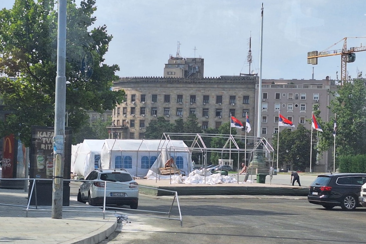 Olujni vetar u Beogradu danas je oduvao šatore pristalica aktuelne vlasti koji već tri meseca blokiraju saobraćaj na trgu Nikole Pašića.