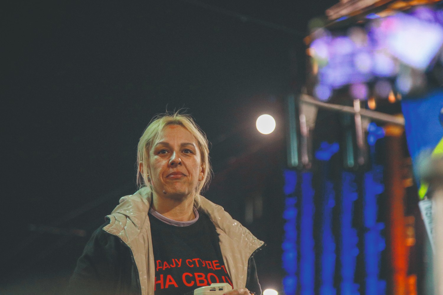 Nekoliko stotina građana i večeras je prisutno i pruža podršku Dijani Hrka, gde blokiraju saobraćaj na uglu Takovske ulice i Bulevara kralja Aleksandra.