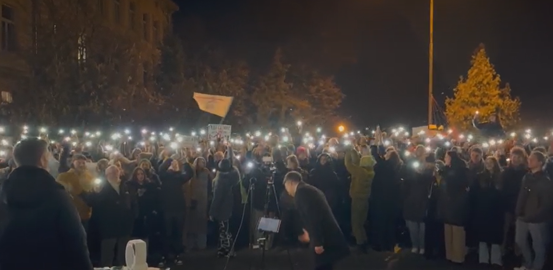 U 23.52 počelo je 15 minuta tišine za 15 nastradalih u padu nadstrešnice na Železničkoj stanici u Novom Sadu, a okupljeni su u tišini držali uključene telefone iznad glave.