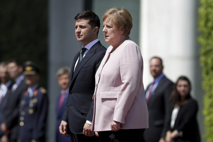 Kancelarka je primetno drhtala stojeći pokraj ukrajinskog predsednika Volodomira Zelenskog po vrelom danu.