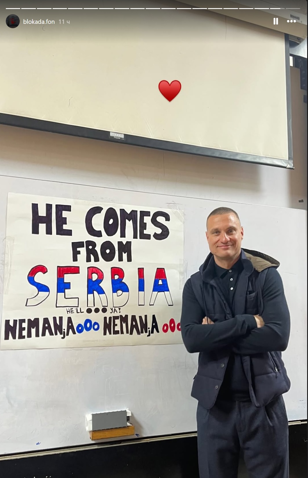 Nemanja Vidić, legendarni srpski fudbaler, gostovao je studentima u blokadi na Fakultetu organizacionih nauka u Beogradu.