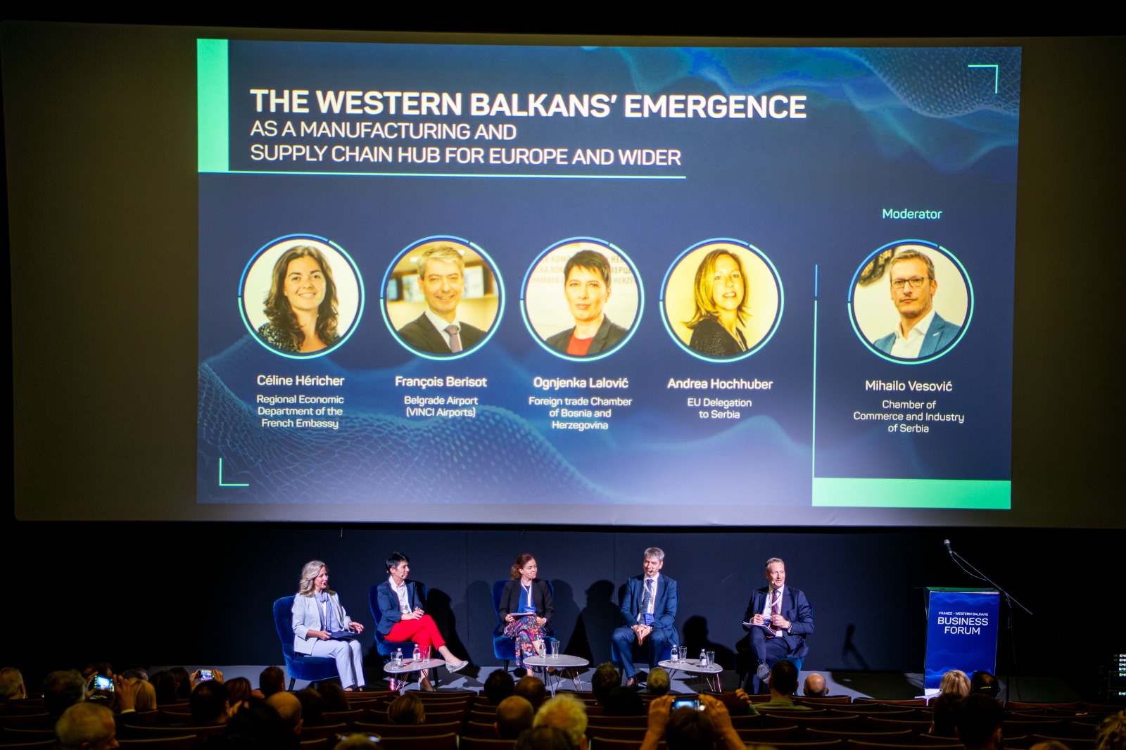 Juče je u Beogradu otvoren dvodnevni forum Francuska – Zapadni Balkan: „Proizvodnja, lanac snabdevanja i ESG prakse” u organizaciji Francusko-srpske privredne komore, a u saradnji sa Ambasadom Francuske u Beogradu i savetnicima Francuske za spoljnu trgovinu.