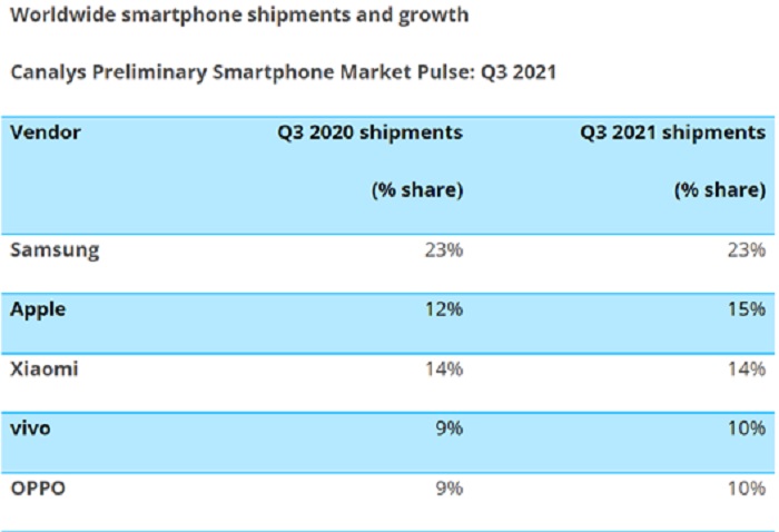 Prema najnovijim podacima kompanije Canalis, vivo je zauzeo četvrto mesto po broju isporučenih pametnih telefona u trećem kvartalu 2021. godine