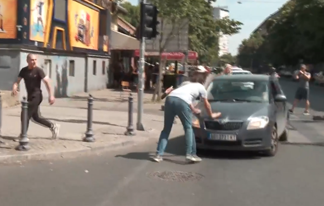 U jednom trenutku zadnje staklo automobila je razbijeno, a vozača su građani sprečili da nastavi put. On je povređen od posledica razbijanja stakla.