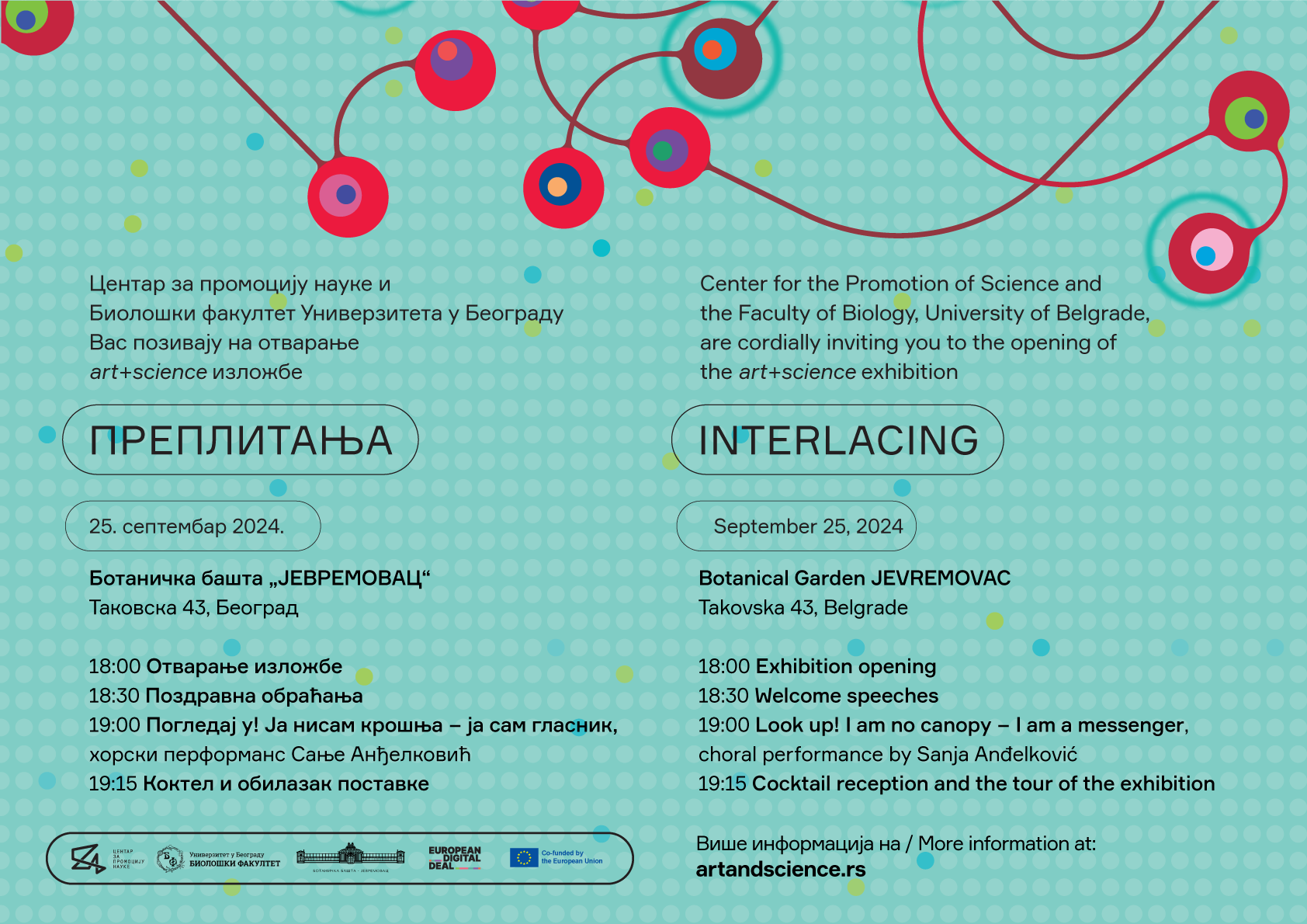 Izložba Preplitanja otvara vrata 25. septembra u 18 časova, donoseći suptilne dijaloge između digitalnog, analognog i organskog sveta. Uz raznovrsne prateće sadržaje, poput edukativnih radionica, predavanja, razgovora, performansa i vođenih tura, art+science program nudi petonedeljno istraživanje Bašte i izloženih radova.