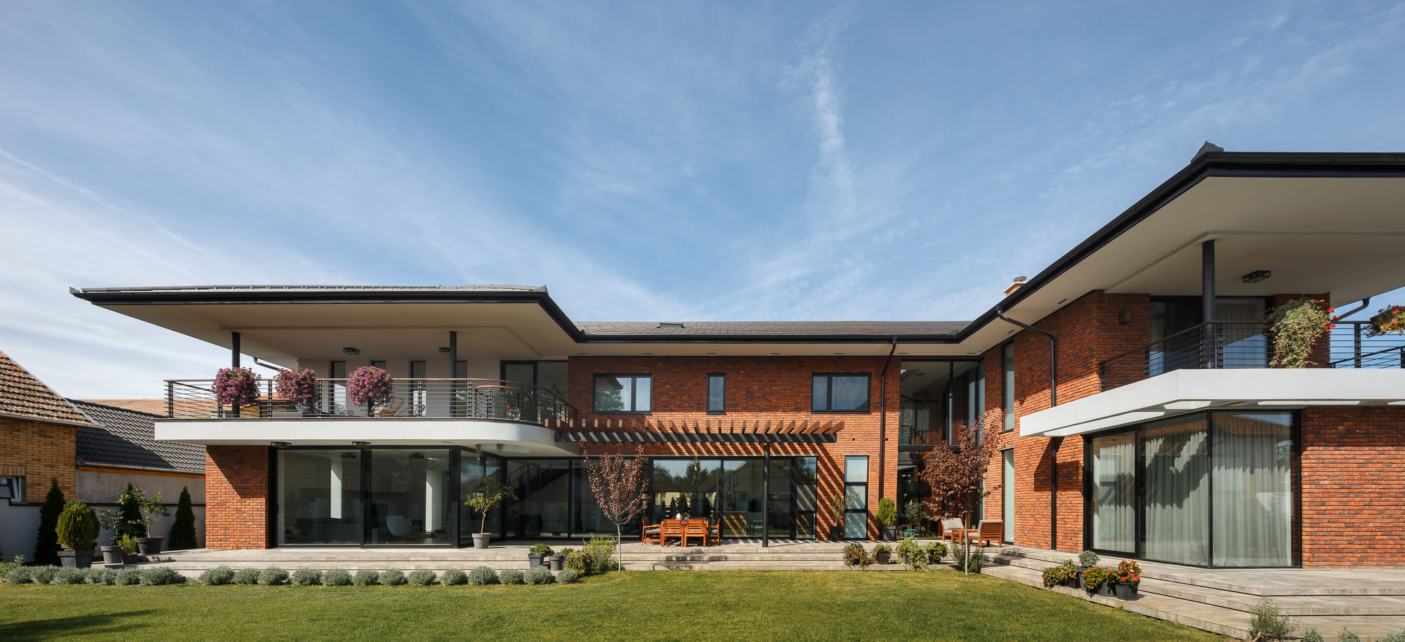 Povoljna orijentacija kuće, veliki broj otvora na južnoj strani, ali i zaštitna pergola i odgovarajuće nadstrešnice, istovremeno omogućavaju izuzetnu osvetljenost unutrašnjosti i zaštitu od prevelike toplote. Uz to, pažljivo odabrani sistemi za grejanje i hlađenje čine ovaj objekat energetski efikasnim i povoljnim za svakodnevni život.