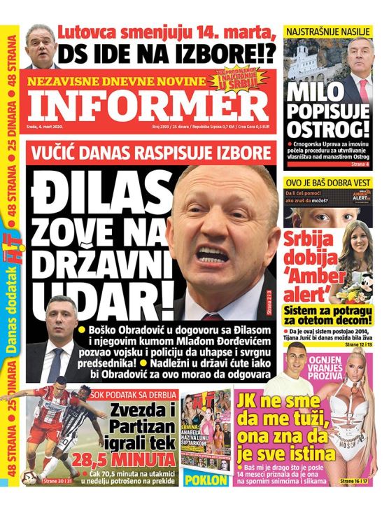 NASLOVNE STRANE DNEVNIH NOVINA: