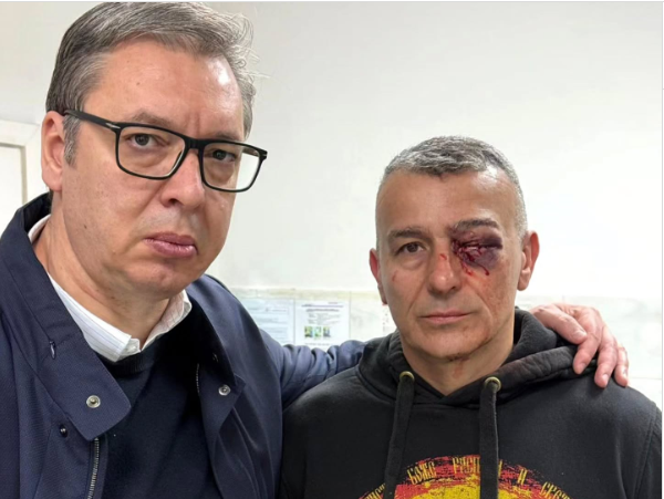 Predsednik Srbije Aleksandar Vučić objavio je fotografiju sa povređenim policajcem kojeg su ispred RTS-a, prema njegovim rečima, napali „boljševički plenumaši“.