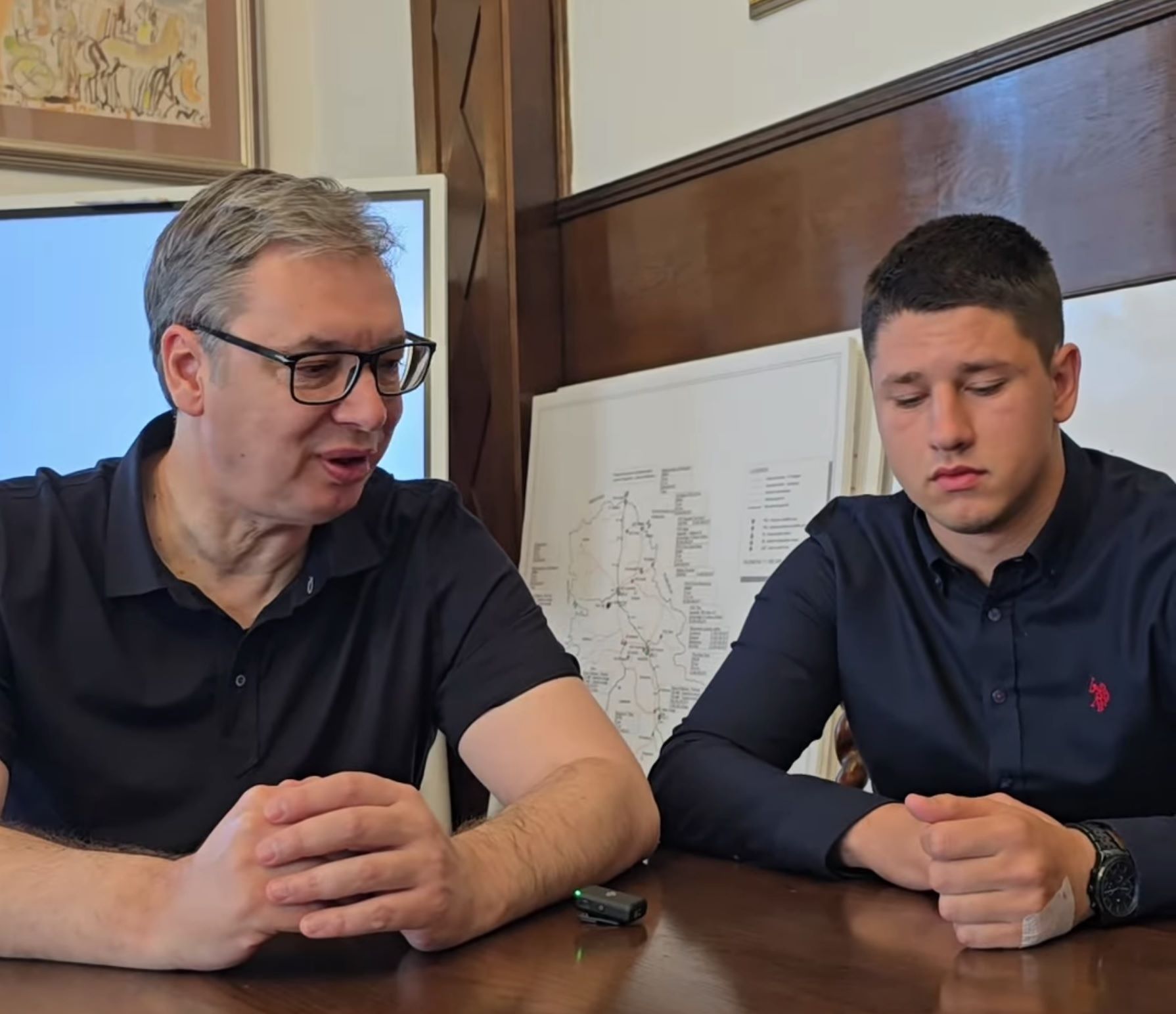 Na snimku iz predsedništva, koji je objavljen na Instagramu, vidi se i Miloš Pavlović. On na ruci ima flaster, na licu i glavi nema vidne povrede.