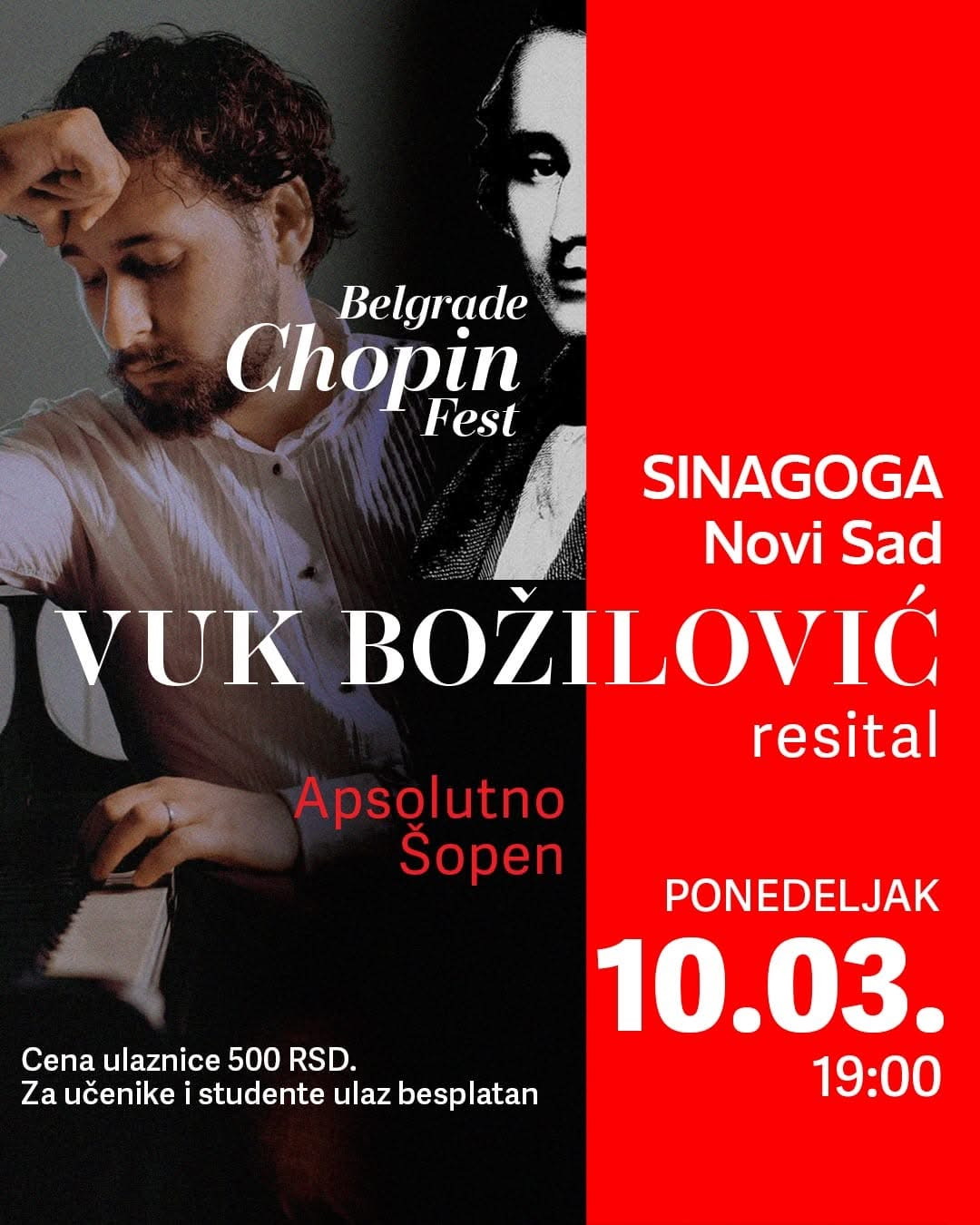 Vuk Božilović rođen je 1993. u Beogradu. Osnovne i master akademske studije završio je u klasi prof. Lidije Stanković, na Fakultetu muzičke umetnosti u Beogradu, gde je trenutno student doktorskih studija na katedri za kamernu muziku, u klasi prof. Sonje Lončar.