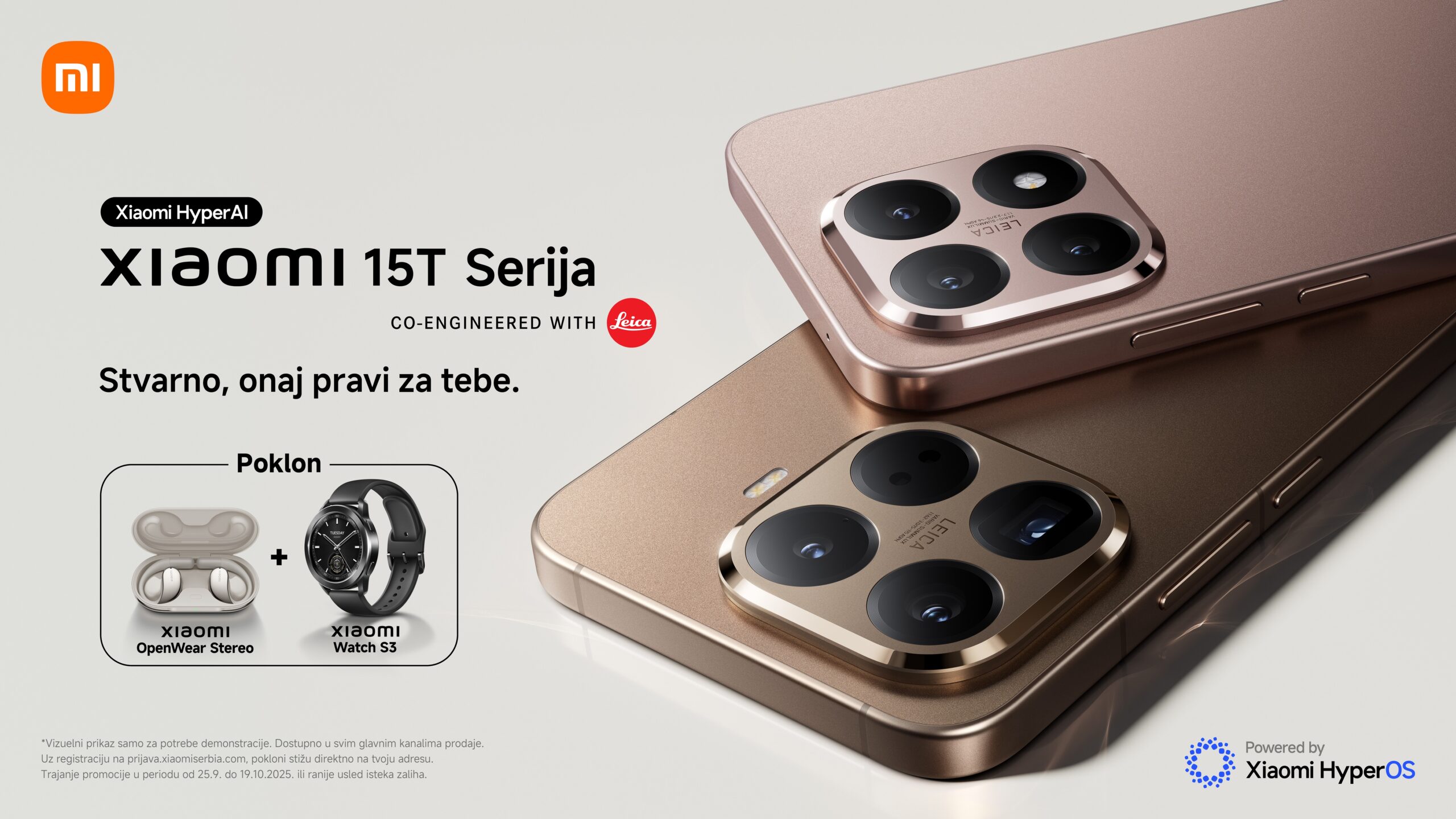 U periodu od 25. septembra do 19. oktobra, kupovinom modela Xiaomi 15T ili Xiaomi 15T Pro kupci će na poklon dobiti Xiaomi Watch S3 Black i Xiaomi OpenWear Stereo Sandstone Beige. Ova akcija omogućava da uz novi telefon odmah isprobate i dodatne uređaje koji upotpunjuju Xiaomi ekosistem.