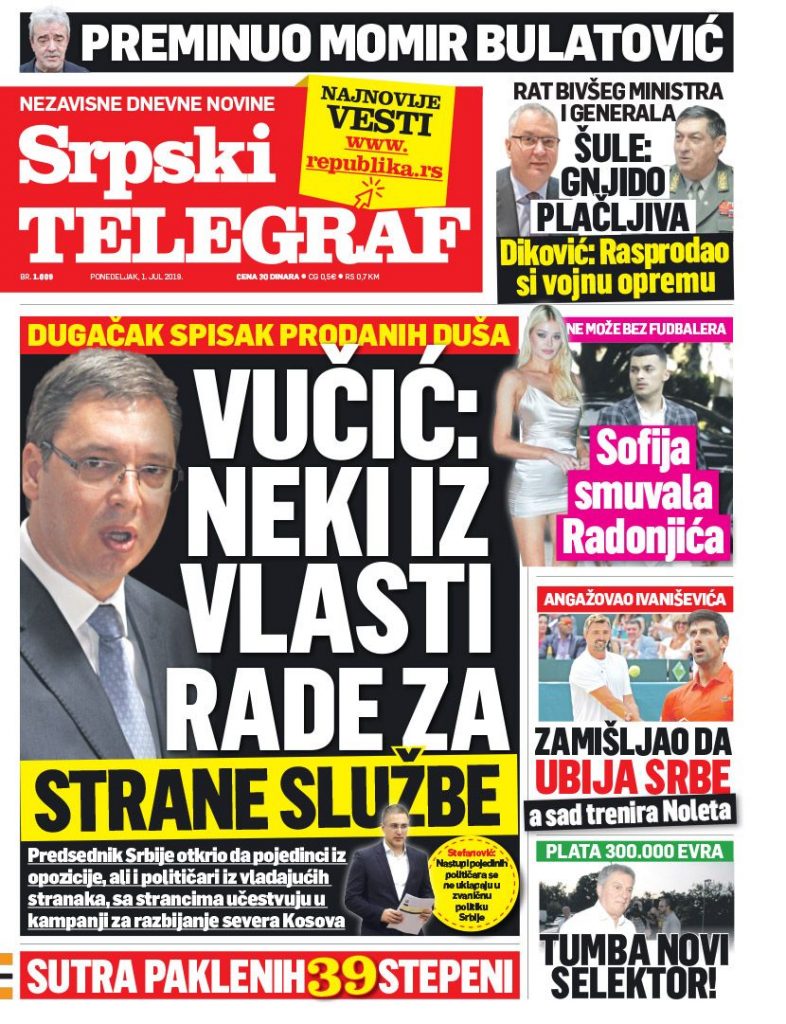 NASLOVNE STRANE DNEVNIH NOVINA