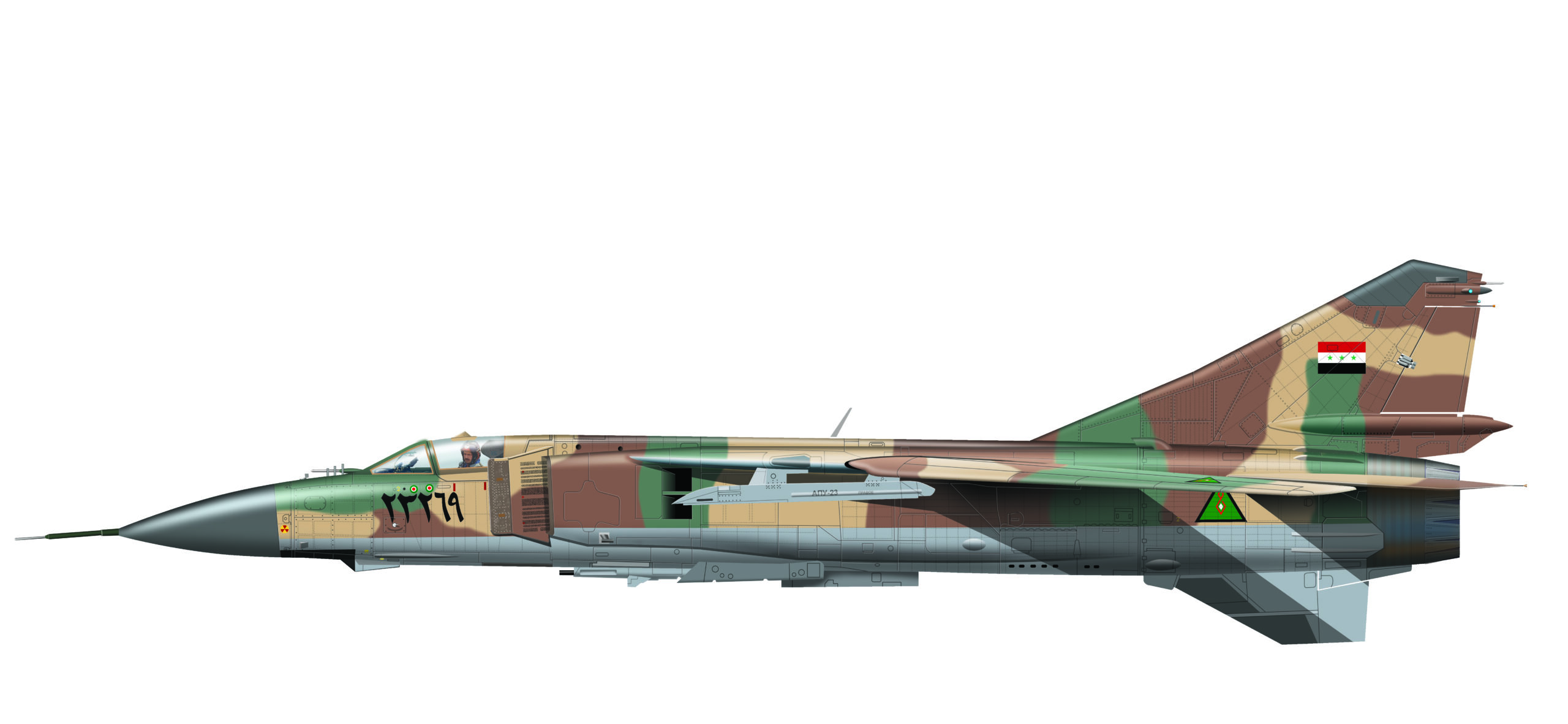 Irački piloti leteli su na MiG-23 ranih varijanti i na MiG-23ML koje su dobili 1984. i 1985. godine. Avion prepoznatljiv po promenjivoj streli krila bio je rasni presretač maksimalne brzine 2,35 M i velike brzine penjanja od 280 m/s. Na maksimalnom razmaku krila sa strelom od 16° (prema pokazivaču u kabini pilota) piloti MiG-23ML poletali su i sletali, za manevarski vazdušni boj postavljali su krila na 45°, a za velike brzine hidraulični mehanizam pokretao je krila do strele od 72°.
