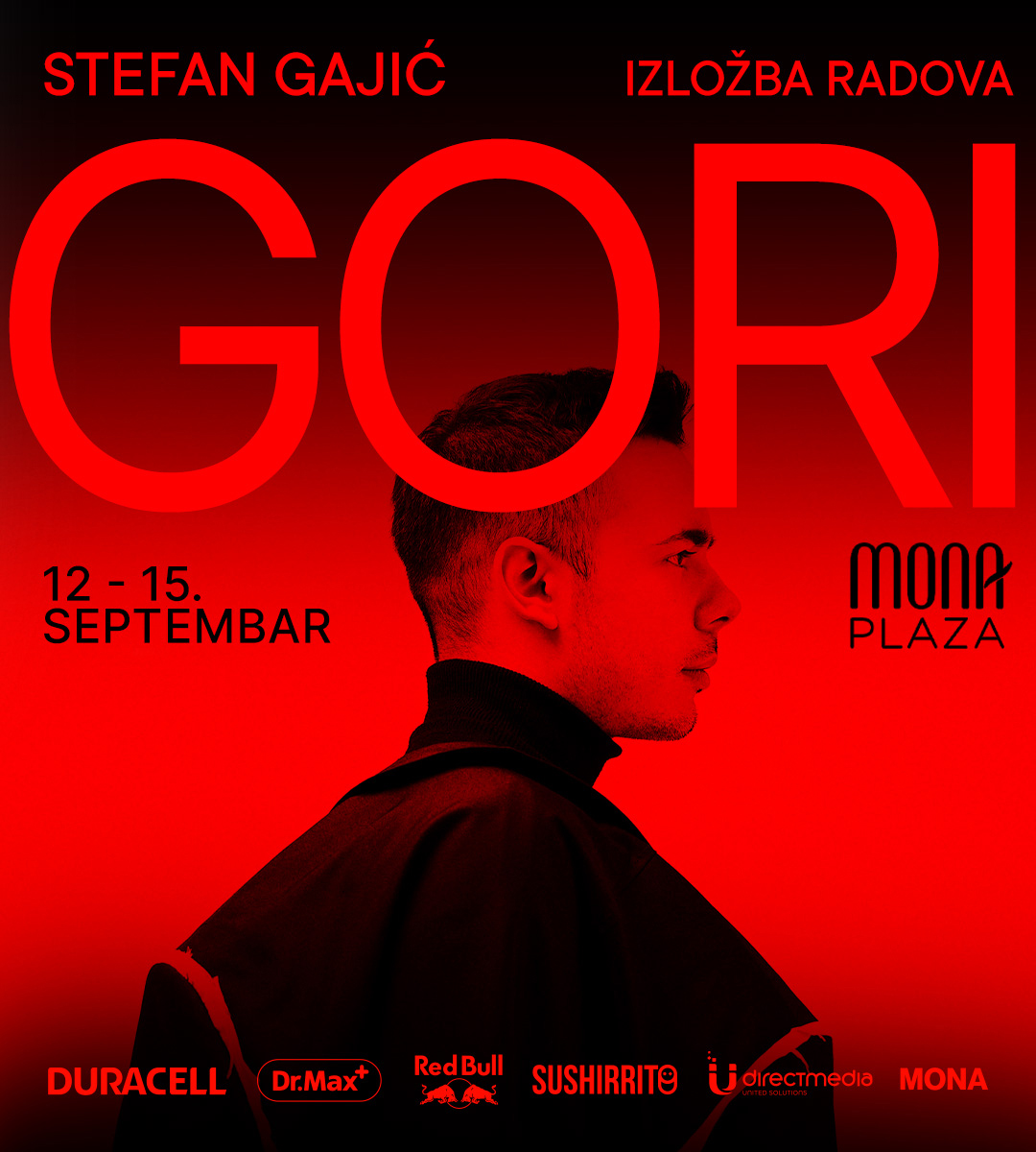 Tokom tri dana trajanja izložbe, publika će imati priliku da na digitalnim formatima, ekranima, led panelima i 360 instalacijama uživa u radovima koji odgovaraju na temu GORI. Postavku čine tri tematske celine, odakle proizlazi i sam naziv. Pre svega, radovi Stefana Gajića se bave gorućim temama o kojima svi svakodnevno pričamo na poslu, sa prijateljima, porodicom i koje nam okupiraju misli. Drugi segment izložbe je potreba umetnika i kreativaca za postizanjem viralnosti – kreiranje rad ova koji će zapaliti javnost i digitalne kanale. Treći segment je i neizostavan na putu svakog stvaraoca – kreativno sagorevanje (burnout), koje proizilazi upravo iz zagrejanosti za svoju profesiju – u slučaju umetnika , advertajzing industriju.