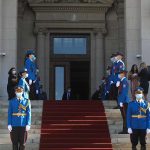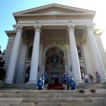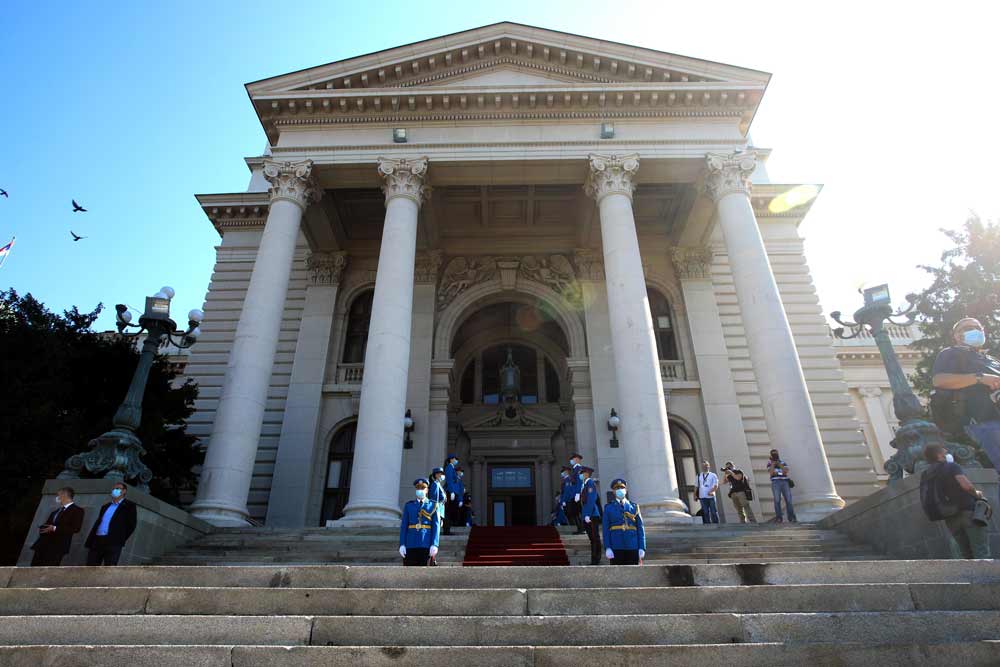 Konstituvna sednica novog 12. saziva Skupštine Srbije je počela uz intoniranje himne „Bože pravde“, špalir garde na ulazu u Dom Narodne Skupštine, ali i demonstracija ispred glavnog ulaza.