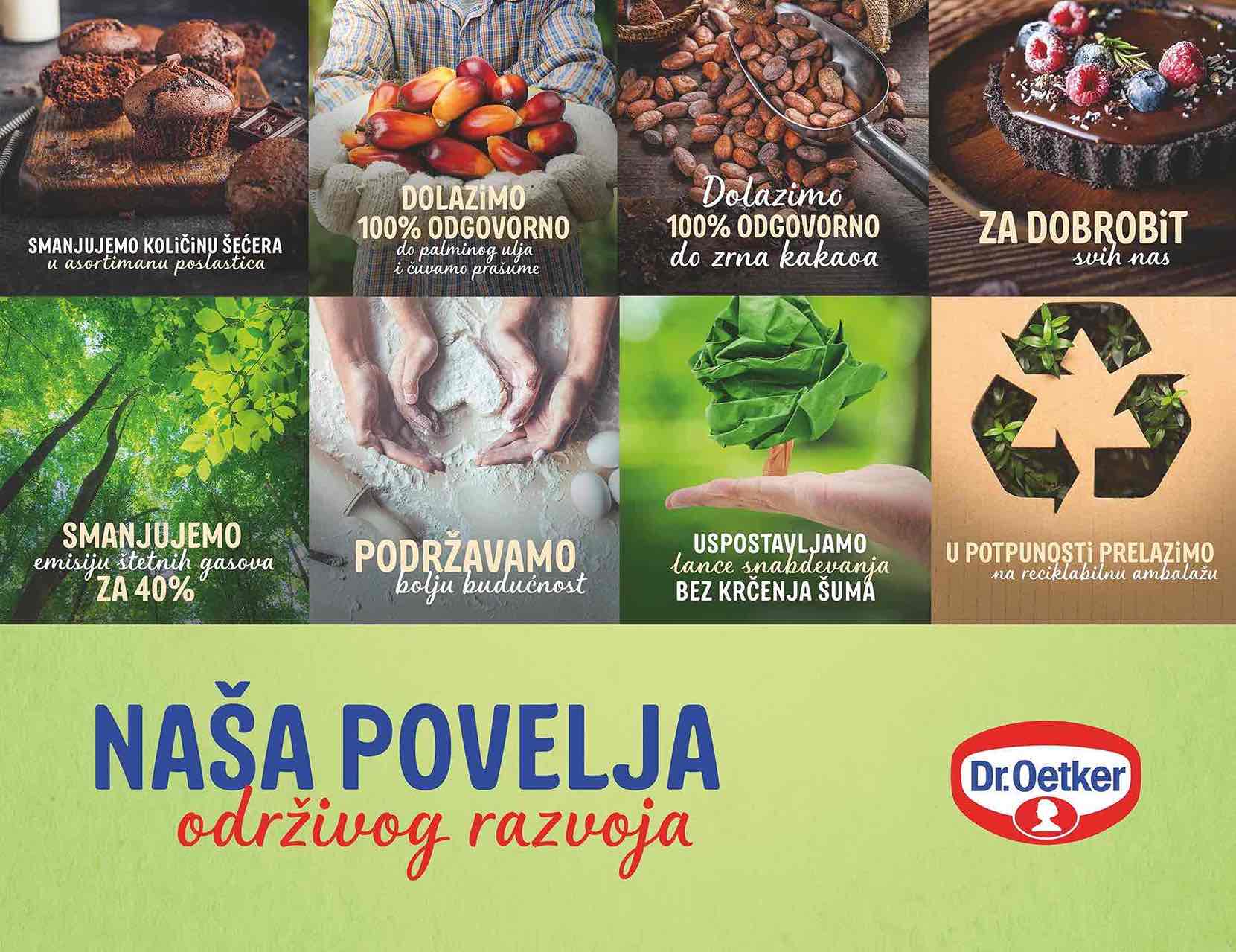 Odgovorno upravljanje resursima: Kroz saradnju sa Rainforest Alliance, Dr. Oetker aktivno doprinosi očuvanju šuma i njihovom održivom upravljanju. Ova inicijativa igra ključnu ulogu u zaštiti biodiverziteta, očuvanju prirodnih resursa i smanjenju negativnih uticaja na ekosisteme.