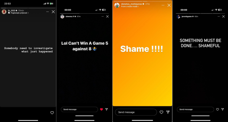 Oni su posle sinoćnog poraza u „Beogradskoj areni“ objavili seriju poruka na Instagramu u kojima su izrazili nezadovoljstvo načinom na koji je sudijska trojka Huan Karlos Garsija, Matej Boltauzer i Gvido Đovaneti vodila utakmicu 12. kola rešenu u produžetku.