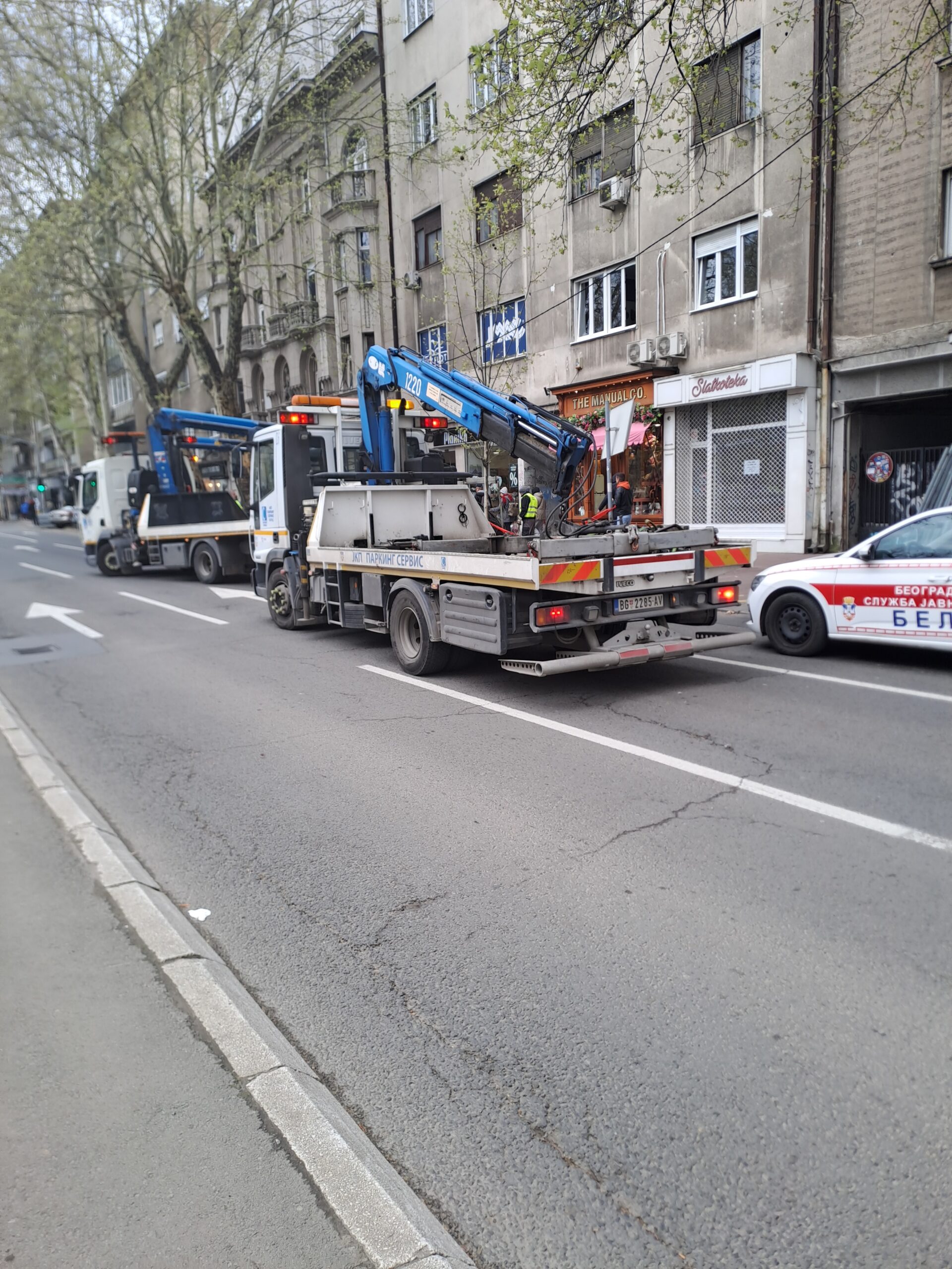 U isto vreme, više desetina „pauk“ vozila Parking servisa odnosi parkirane automobile koji su regularno i po pravilima bili parkirani na obeleženim mestima.