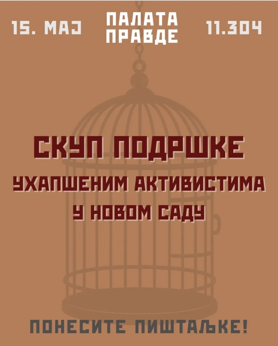 Na poziv studenata, ispred Palate pravde u Kragujevcu održan je skup podrške novosadskim aktivistima na kome je poručeno da je to istovremeno i podrška budućnosti u kojoj studenti i građani neće biti pritvarani.