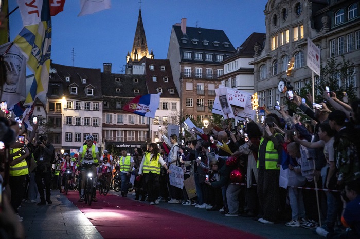 Studenti koji su prethodnih dana biciklima krenuli iz Novog Sada, stigli su sinoć u Strazbur, gde im je upriličen svečani doček. Oni su prešli oko 1.400 kilometara kako bi institucije Evropske unije, kao i evropsku javnsost, upoznali sa svojim zahtevima i situacijom u Srbiji.