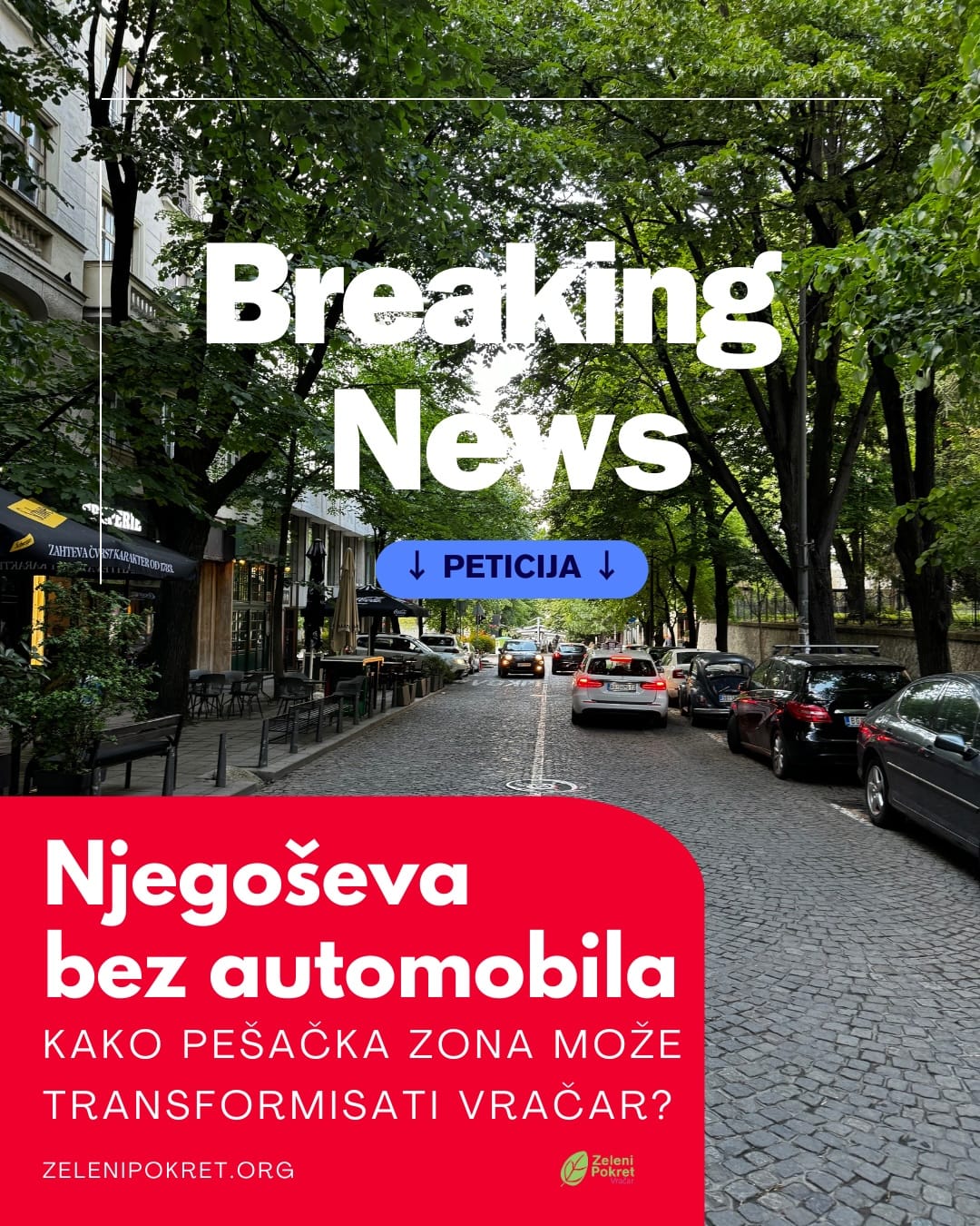 Zeleni pokret Vračar pokrenuo je peticiju da se Njegoševa ulica na Vračaru zatvori za saobraćaj i pretvori u šetačku zelenu oazu, čime bi se, kako kažu, omogućila zdravija životna sredina.